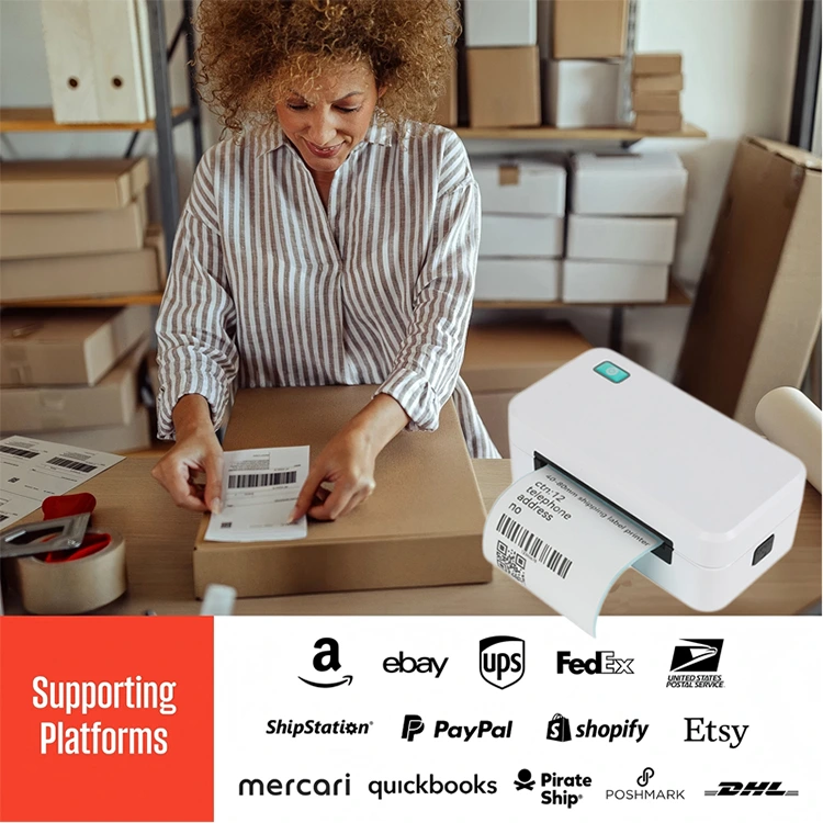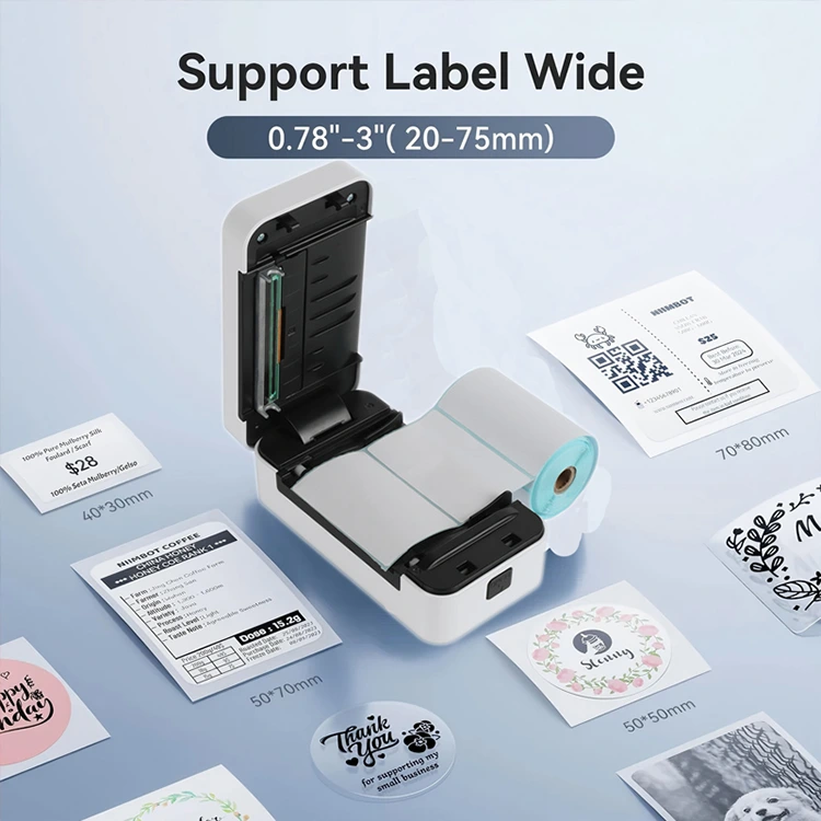 Skriveren har en innebygd papirskuff for praktisk papiroppbevaring, og toppdekselet kan åpnes ved å trykke på en sideknapp for enkel betjening. Den skriver ut raskt og tydelig uten blekkflekker, noe som gjør den ideell for utskrift av fraktetiketter, strekkoder og andre etiketter på steder som boblete-butikker og varehus.
