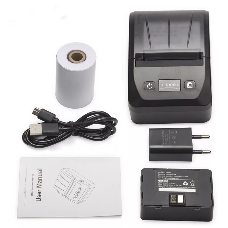 Den har et standard Bluetooth + USB-dobbelt grensesnitt, kompatibel med Android, iOS, Windows og ESC/POS-kommandoer. Det komplette tilbehøret inkluderer: USB-ladekabel, strømadapter, papirrull og brukerveiledning.