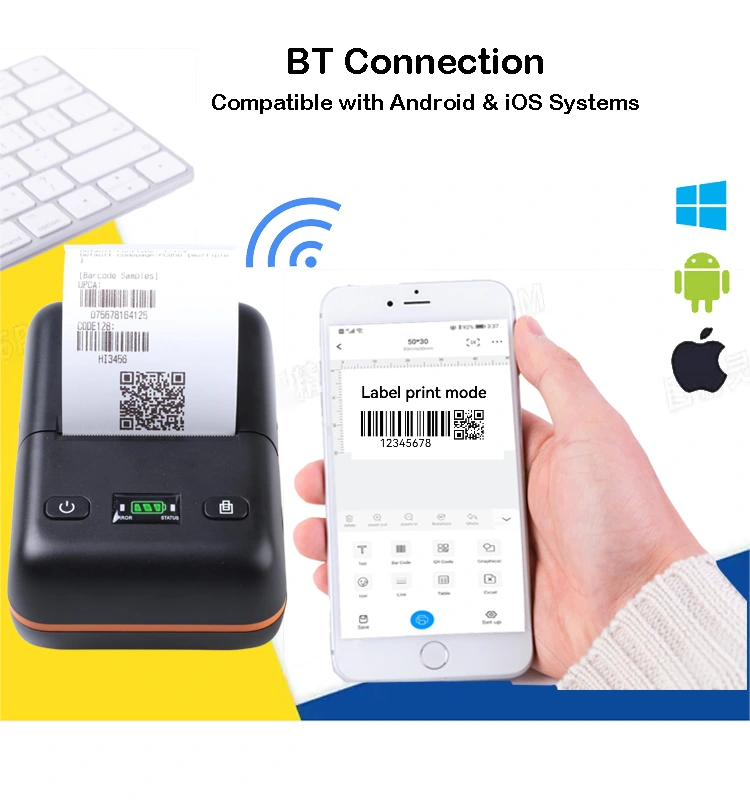 Vår bærbare termiske skriver bluetooth kan støtte engelsk, kinesisk, fransk, spansk, indonesisk, hindi, kambodsjansk, vietnamesisk osv. 70 språk. Vi støtter Android, IOS, Linux, Mac book, Win2000,Win2003,WinXP,Win7,Win8, Win8.1,Win10,Win11 etc.
